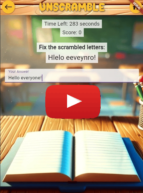 The app takes a sentence from a chosen document, scrambles the letters within each word, and challenges students to unscramble them to reconstruct the sentence correctly.