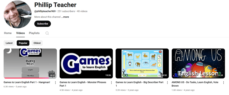 The collection of videos available on my Phillip Teacher YouTube channel showcase some of the online learning experiences that I've created for my students over the years.